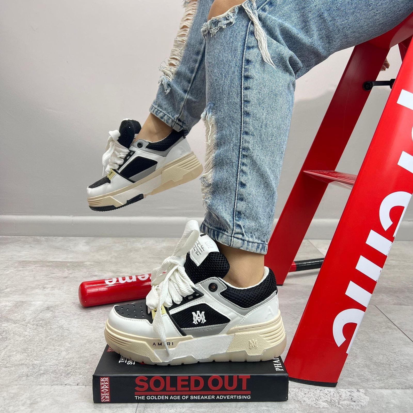 Los AMIRI Black & White son el equilibrio perfecto entre lujo y estilo callejero. Su diseño robusto con mezcla de materiales premium y contraste en blanco y negro los convierte en una pieza única para destacar en cualquier ocasión. Ideal para quienes buscan comodidad, exclusividad y presencia en cada paso.
